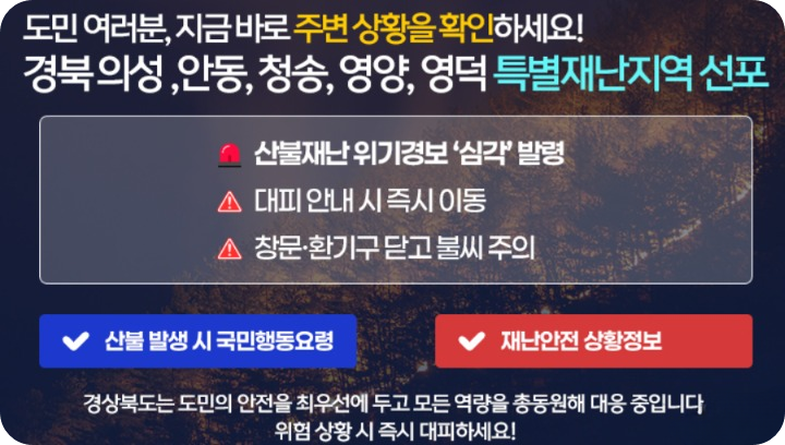 🔥 산불 피해를 입으신 분들께 깊은 위로의 말씀을 전합니다. 🔥