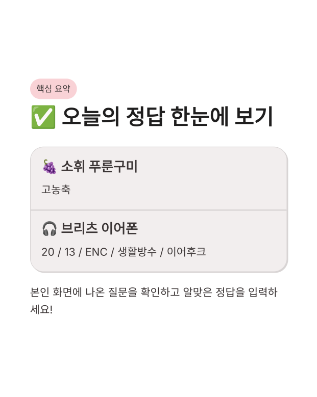 ✅ 한눈에 보는 오늘의 정답 핵심 요약