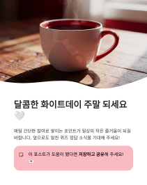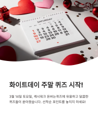 매일매일 간단한 참여로 쌓이는 포인트가 일상에 작은 즐거움이 되기를 바랍니다. 달콤하고 따뜻한 화이트데이 주말 보내시길 바라며, 앞으로도 알찬 정보로 꽉 채운 퀴즈 소식을 기대해 주세요!