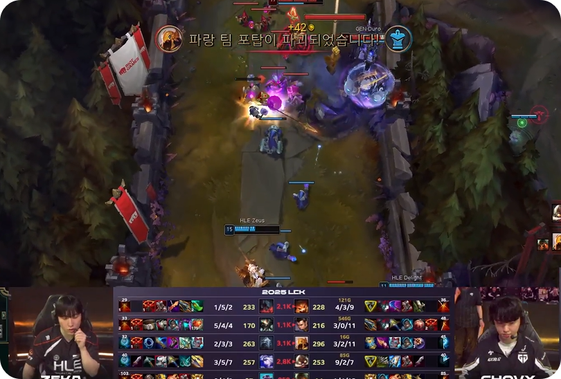 - **승부의 갈림길**: 쵸비는 이어진 드래곤 교전에서도 뛰어난 활약으로 불리한 상황을 뒤집었고, 젠지는 드래곤과 아타칸을 연속으로 확보하며 빠른 템포로 경기를 장악했습니다. 내셔 남작 교전에서 한화생명을 압도하며 버프를 챙긴 젠지는 29분경 넥서스를 파괴, 2:0 승리를 완성했습니다.